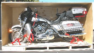 POP UP® STANDARD CRATES. INTERGROUP GLOBAL FORWARDER LTD. PROVIDES CRATING SERVICES FOR CARS, MOTORCYCLES, ATV'S, AND OTHER DELICATE ITEMS FOR TRANSPORT BY AIR, LAND OR SEA. COMPLETE DEALER AND AUCTION SITE TRANSPORT SOLUTIONS PROVIDED. MOTORCYCLES ARE SECURED WITH HIGH QUALITY MOTORCYCLE STRAPS. ALL CONNECTION POINTS ARE PROTECTED WITH SOFT STRAPS. CRATE CONSTRUCTION IS INTERNATIONALLY APPROVED FOR EXPORT. SAVE TIME AND MONEY WITH OUR POP UP® CRATES! NO TOOLS REQUIRED FOR ASSEMBLY. SOFT TIES, STRAPS, AND RAMP INCLUDED TO PROPERLY SECURE YOUR MOTORCYCLE OR YOUR ATV. |